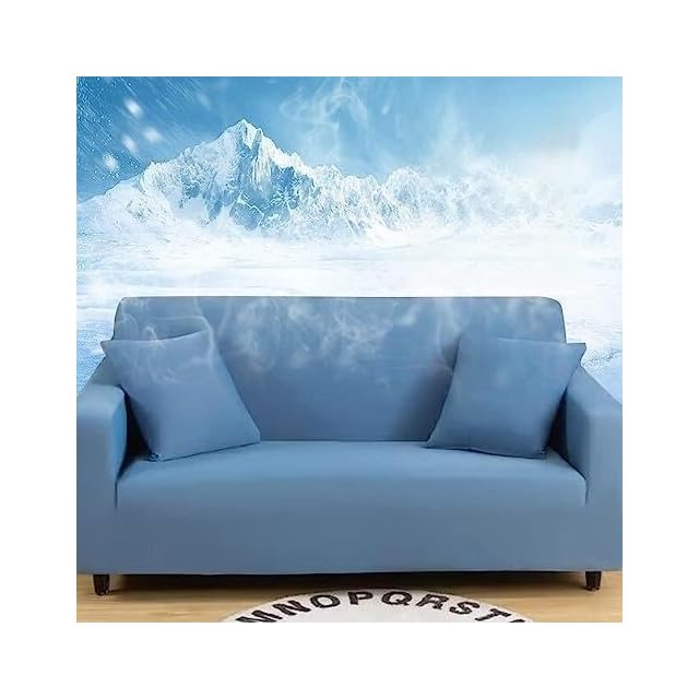 冷感ソファカバー ひんやり ソファーシーツ 夏用 肘付き 肘なし 1-3人掛け クッションカバー1枚付き 超涼しい 接触冷感素材 撥水加工 Qmax0.45 伸縮性 北欧風 ストレッチ 吸湿速乾 防ダニ 抗菌防臭 (2人掛け145-185cm, ブルー)