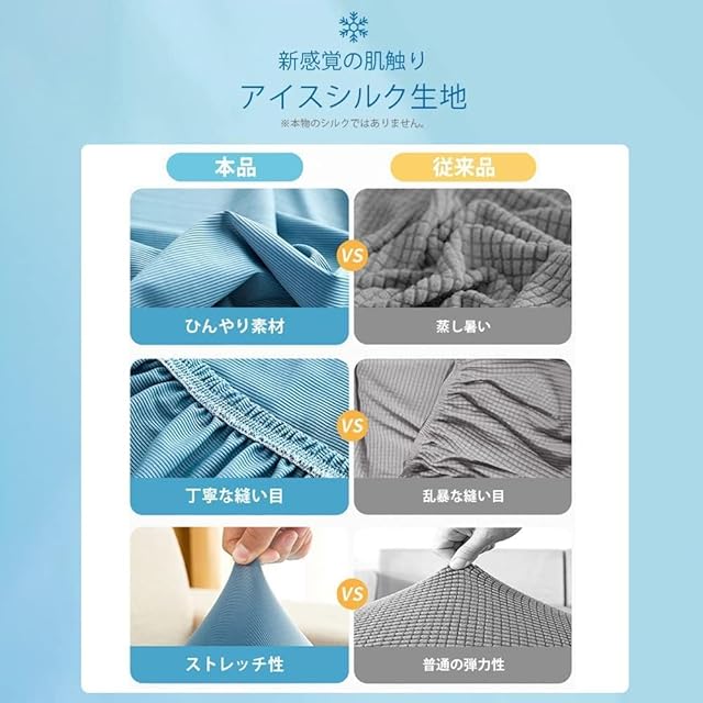 【肌触りのいい】触れるだけで超涼しい感じるので、通気性・吸湿性に優れた、ソファに腰かけているときに感じるべたつきや蒸れを軽減し、暑い夏も快適に過ごせます。エアコンが苦手な方でも使用できるので、節電・節約、環境にもやさしいです。