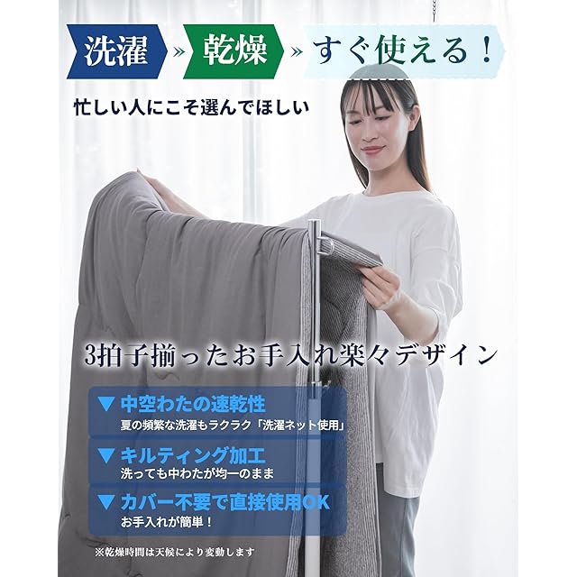 【TEIJINの衛生機能中綿を追加、プロの衛生対策】「抗菌」「防臭」「防ダニ」の効果が備えているため、湿気や寝汗などによる菌の増殖がしやすい夏でも安心・安全してご使用いただけます。