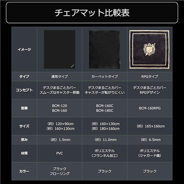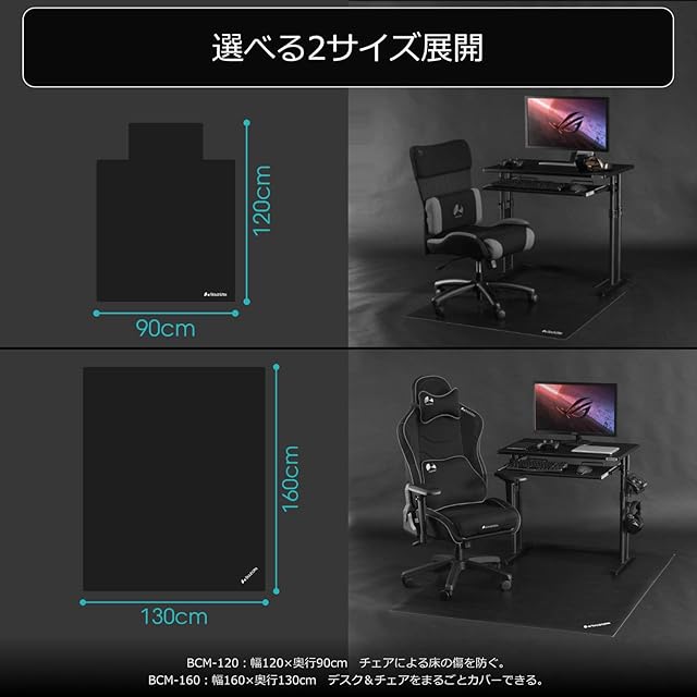 商品名:Bauhutte ( バウヒュッテ ) デスクごとチェアマット カーペット ゲーミング 特大サイズ ( 160 × 130 cm 厚さ 1.5mm ) ブラック BCM-160BK