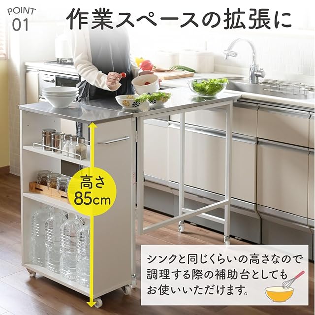 【作業のしやすい高さ設計】高さは85cmとキッチンカウンターと同じような高さになっているので、作業スペースとして使うのもオススメです。