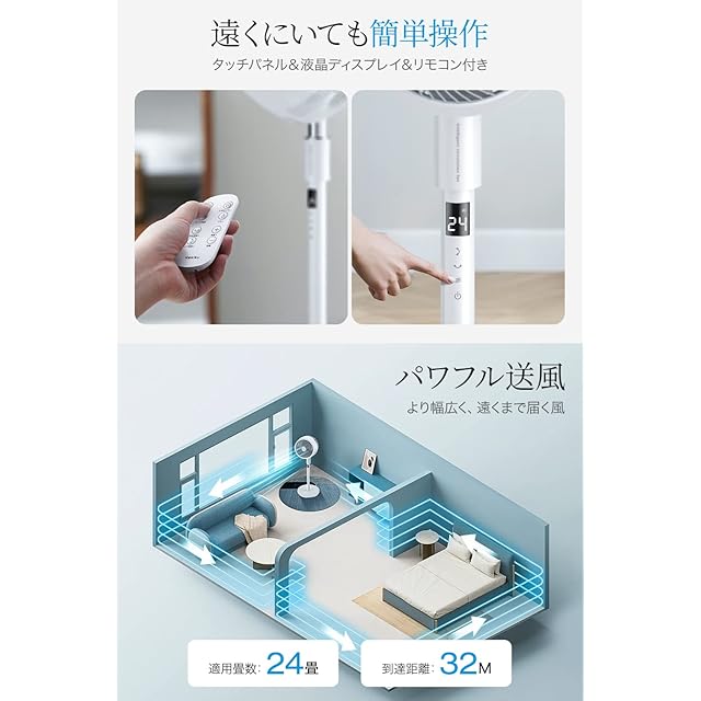 商品名:扇風機 サーキュレーター 【2025夏節電対策&音声操作&AIモード】 リビング扇風機 360度首振り 30畳 パワフル送風 DCモーター 省エネ 32段階風量調節 20dB静音 6つのモード イオンで空気清浄 切/入タイマー 高さ調整可能 アロマ機能 せんぷうき リモコン付き さーきゅれーたー オールシーズン 暑さ対策 冷暖房 換気/空気循環/部屋干し/除塵 梅雨 除湿