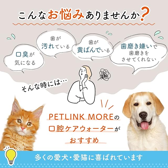 ✅犬や猫の気になる歯垢、口臭に悩んでいませんか?犬猫専用に開発したPETLINKMOREの口腔ケアウォーターで口腔内の臭いや汚れをを清潔にします