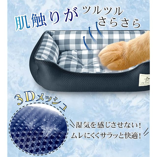 PETSUTA 犬 ベッド 夏【消臭+制菌】猫 ベッド 冷感 ペットベッド 犬 夏用ベッド ひんやり 暑さ対策 高通気性 猫用ベッド 犬用ベッド もちふわ ペットクッション 吸水速乾 洗える 滑り止め(ネイビー 40X31X13cm)