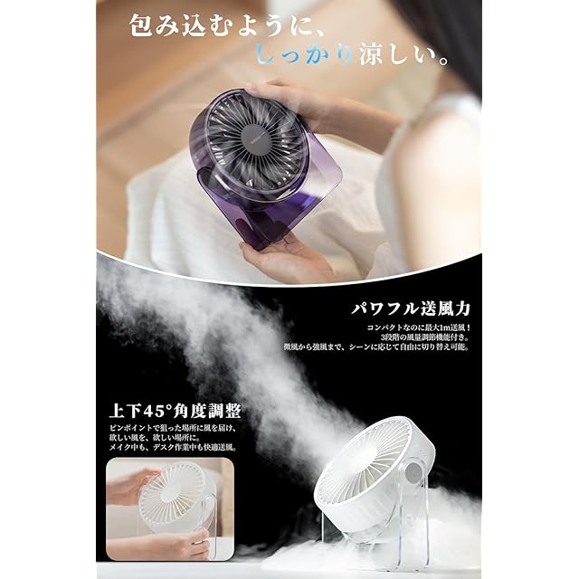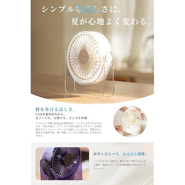 商品名:NISSYO【2025年最新型卓上扇風機・日本正規品】卓上扇風機 USB給電式 おしゃれ 卓上ファン 小型ファン 強風力 3段階風量 静音 携帯扇風機 角度調整可 コンパクト 持ち運び便利 お手入れ簡単 節電 小型扇風機 人気ランキング 卓上/オフィス/寝室 パープル 熱中症対策 蒸れ対策 父の日 母の日 敬老の日 誕生日 ギフト包装 ホワイト