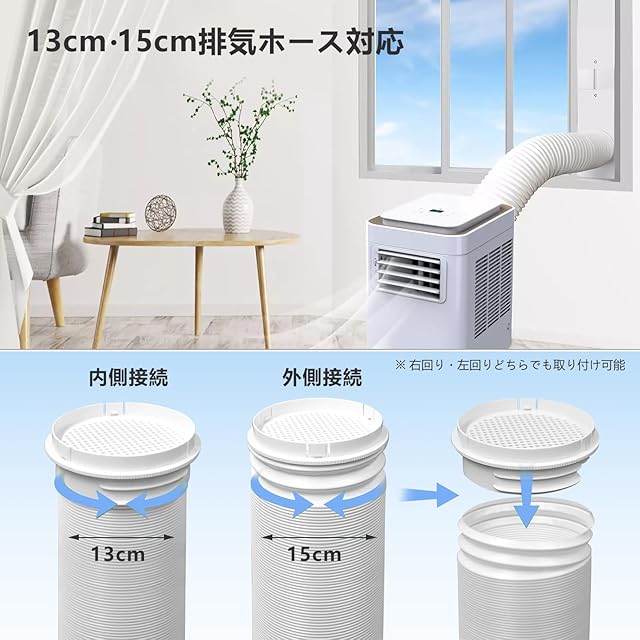 二重径対応:本ダクトパネルは、直径13cmおよび15cmのエアコン排気ホースに対応しており、取り付けが簡単で柔軟性に優れています。多くのポータブルエアコンモデルに適合します。(ご注意:ご購入前に排気ホースの径をご確認ください。)