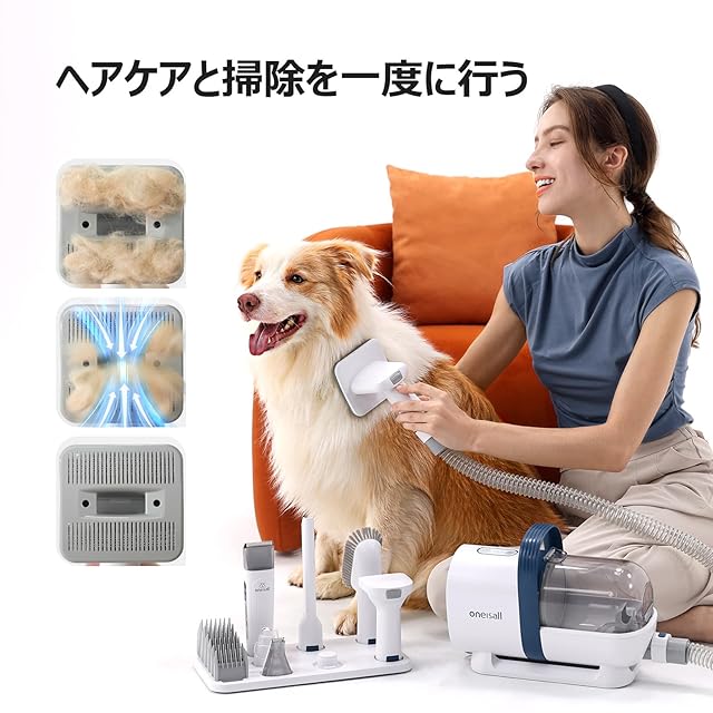 商品名:【ブラシと掃除機一体型】Oneisall ペット用バリカン 犬 猫美容器 7 in 1 多機能ペット掃除機 ペットグルーミングセット 電動バリカン ヘアクリッパーやヘアブラシも含む ペット用品 ペットの抜け毛対策