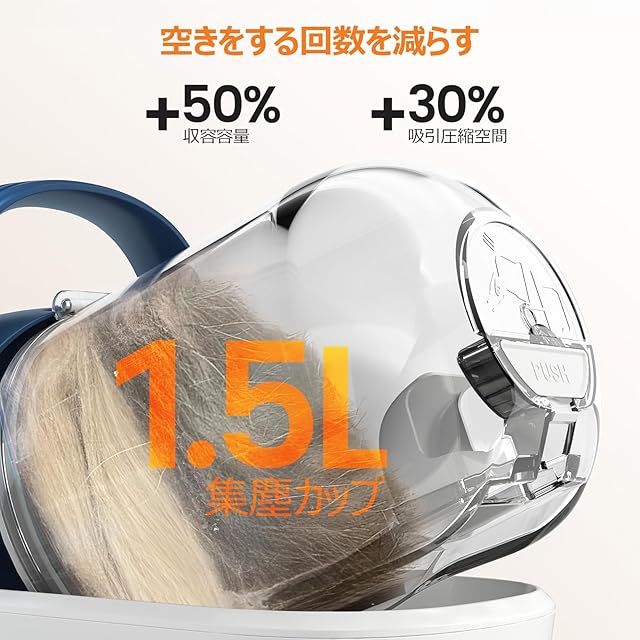 【大容量ダストカップ・着脱簡単】Oneisall LM2ペット用掃除機は、大容量の1.5Lのダストカップを採用、一度で非常に多くの毛を溜めることができます。抜け毛を漏れなくキャッチして吸い込んでくれるので、舞い散ることがありません。ダストカップの着脱は簡単で、中身の毛やゴミを手軽にクリンアップできます。取り外したダストカップは水洗することができます。