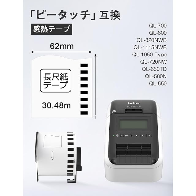 [ ラベルプリンターに使用 ]: QL-800、QL-820NWB、QL-650TD、QL-720NW、QL-700、QL-1050 Type、QL-1115NWB、QL-580N、QL-550及びその他ブラザーラベルプリンター機種