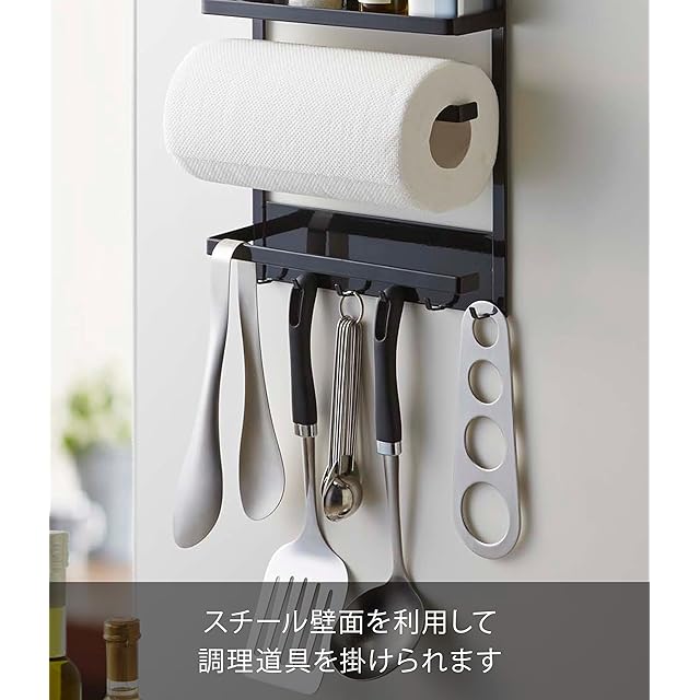 山崎実業(Yamazaki) マグネット 冷蔵庫サイドラック ブラック 約W24.5×D6.5×H34cm タワー tower キッチンペーパーホルダー ラップホルダー 2745