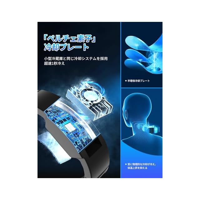 【ペルチェ素子冷却技術・最大-17℃の極寒体験!】最先端のペルチェ素子冷却技術を採用し、冷却効率が大幅にアップ!3枚の冷却プレートが首元をしっかりと包み込み、素早くクールダウンさせます。瞬間極涼温度が最大-17℃可能なので、真夏の炎天下でも凍えるような涼しさを持続。これ一台あれば、暑さに負けない快適な夏が過ごせます。大切な人への贈り物にも最適な、夏らしい爽やかなプレゼントです!