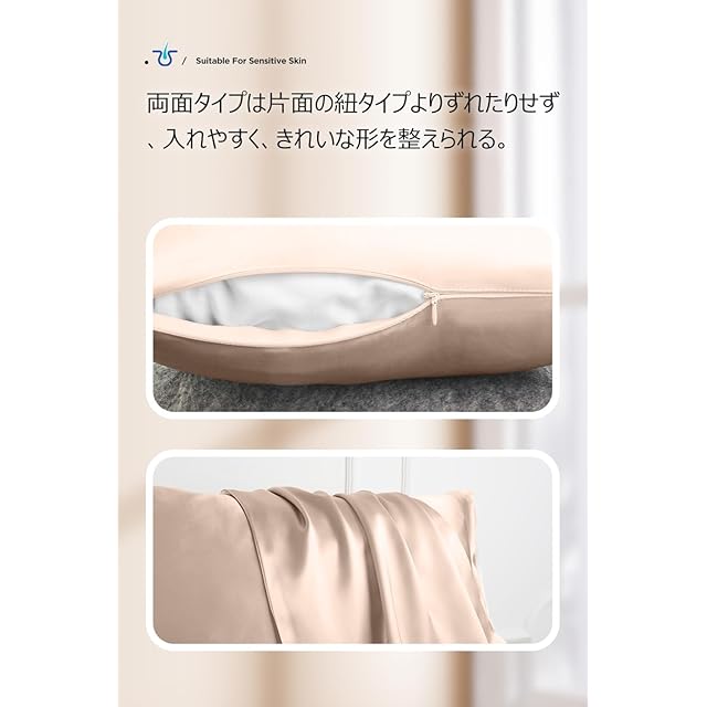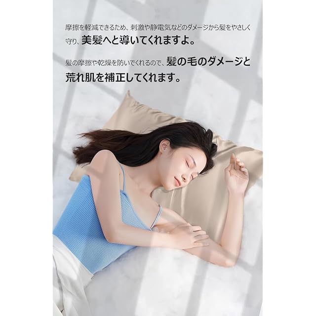 【美髪&美肌枕カバー】シルク100%の枕カバーで、シルクに含まれるタンパク質は、枝毛・縮毛・曲がり・乾燥を最小限に抑え、髪と髪の摩擦を平均45%減らす効果があります。また、抗菌作用もあり、気になる髪の匂いを抑えることが可能です。寝ている間に美髪へ導くので、切れ毛や絡まりなどのヘアケアに悩みのある人にはおすすめ。