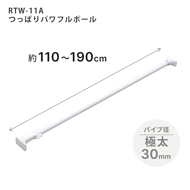 商品名:HEIAN SHINDO つっぱり棒 ジャッキ式超強力タイプ ホワイト 幅110~190cm 耐荷重45~15kg パイプ直径3cm RTW-11A 平安伸銅工業