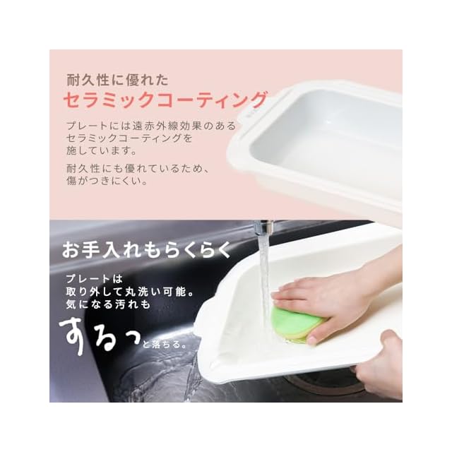 【美味しく焼ける赤外線】 セラミックコーティングでふっくらアツアツの焼き上がりをお楽しみいただけます。 食材の芯まで短時間で火を通し、食材本来のうまみを引き出します。