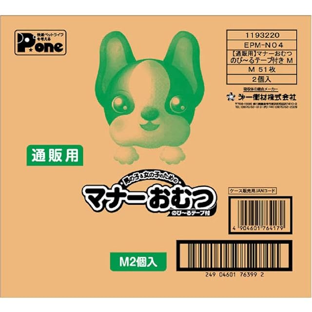 商品名:P.one 通販用 男の子&女の子のためのマナーおむつ のび~るテープ付き ペット用 Mサイズ 51枚入×2個 (ケース販売)