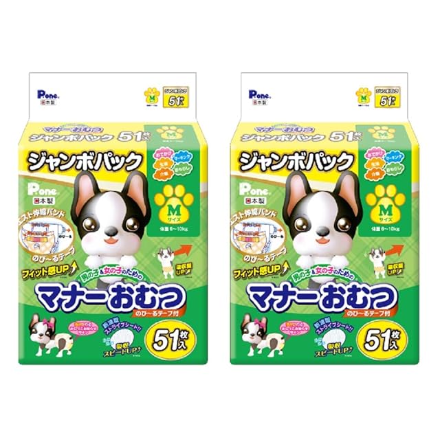 P.one 通販用 男の子&女の子のためのマナーおむつ のび~るテープ付き ペット用 Mサイズ 51枚入×2個 (ケース販売)