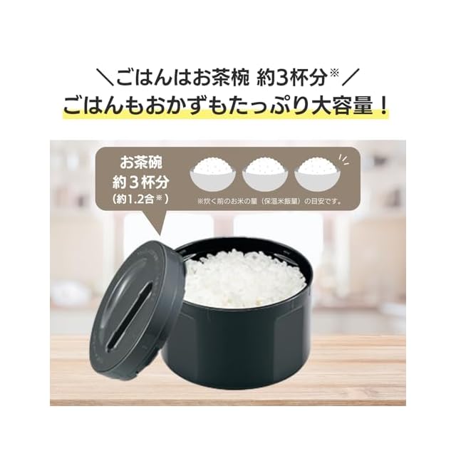 お腹いっぱいで、栄養のバランスを考えた健康なランチが楽しめます。まほうびんでごはんをしっかり保温し、ランチタイムにうれしいぬくもりを届けます。