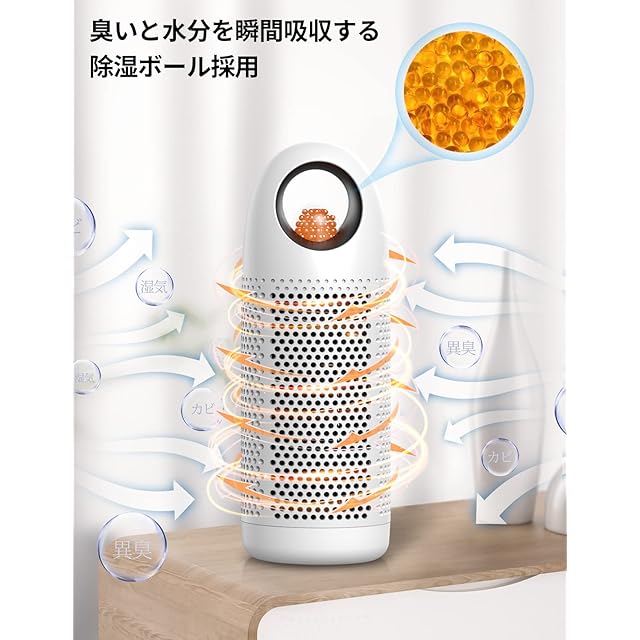 【除湿&消臭で一石二鳥】シリカゲルボールは数千万個の極々小さいホールで満たされいて、水分子をしっかり掴んで、強力に除湿を達成します。 さらに、消臭効果のあるシリカゲル内蔵で、除湿&消臭がこれ一台で実現。