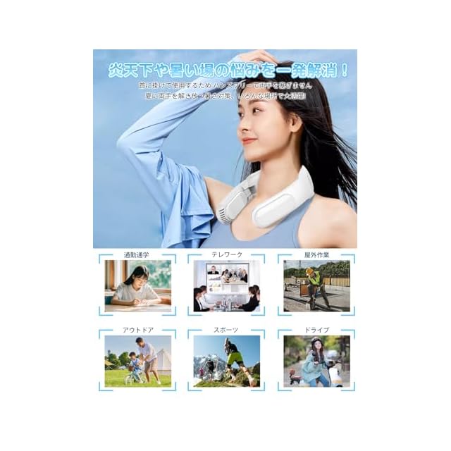 【安全、耐久性、静音設計】この 首掛け扇風機は超軽量設計を採用しています。長時間使用しても首に負担がかからないネックエアコンです。日常生活のあらゆる場面で気軽に使用でき、持ち運びも簡単です。また軽量で静音なので、髪の毛が絡まったり異物が挟まったりする心配もなく、安心・安全にお使いいただけるネッククーラーです。スタイリッシュなネックファンで暑い日も快適に過ごせます。静音設計なので、オフィスや図書館などの静かな場所でもご使用いただけます。母の日、父の日、女性、男性、恋人、友人、家族、誕生日プレゼントなど、特別な夏のギフトを選ぶのに苦労することはありません。