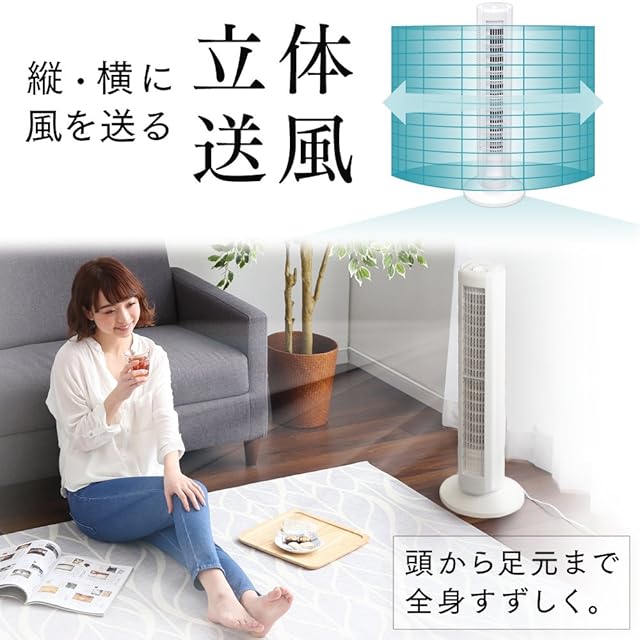 商品名:【節電対策】 アイリスオーヤマ 扇風機 タワーファン スリム 左右自動首振り パワフル送風 風量3段階 上下ルーバー メカ式 ホワイト TWF-D82T