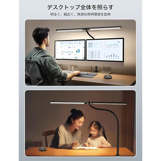 商品名:BeaNet デスクライト LED 「無線リモコン・ダブル光源・幅800mm・24W・2000Lx」 5段階調光調色 電気スタンド クランプ「PSE認証済」 幅広 スタンドライト 多角度調節 卓上ライト 目に優しい 読書/勉強/仕事 ブラック BNT-DEL07(T型 ・Pro版)