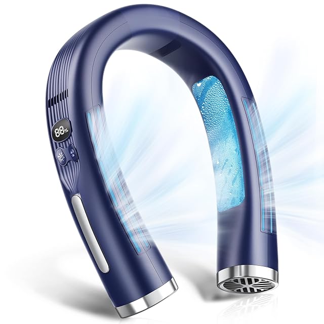 首掛け扇風機 ネッククーラー 一秒冷却【2025年夏新型 冷感首掛けファン ダブル半導体冷却プレート】3段階風量&冷感&温感調節 ハンディクーラー 羽根なし 6000mAh大容量 Type-c充電 角度調節可能 静音 節電 省エネ 携帯扇風機 持ち運び LCD液晶ディスプレイ 熱中症対策/夏用品/屋外作業/父の日/母の日/誕生日/プレゼント (青)