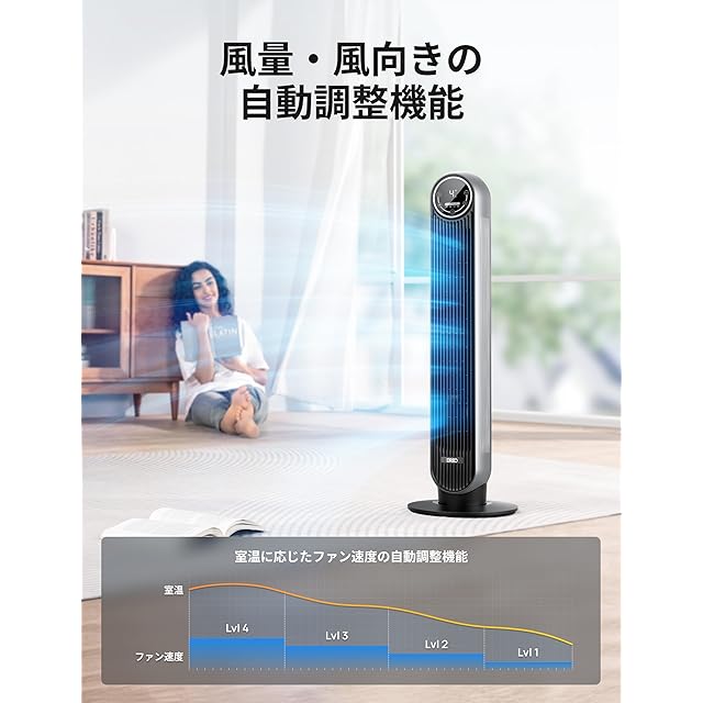 商品名:Dreo 扇風機 タワーファン 静音 左右90°自動首振り パワフル送風 7.6m/s 風量4段階 LEDディスプレイ リモコン付き 8時間タイマー機能付 羽なし おしゃれ グッズ オフィス/脱衣所/寝室/居間用 DR-HTF007 PSE認証済み