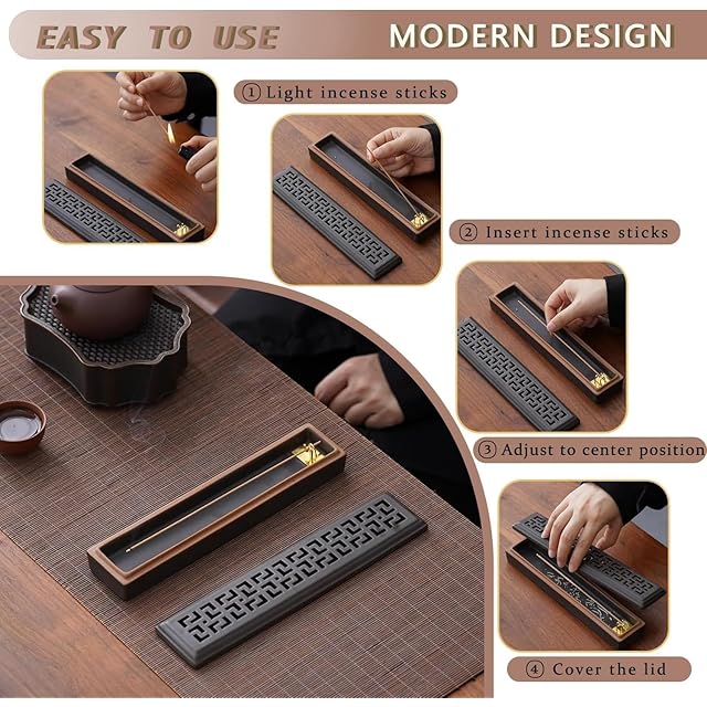 【香炉ボックス】セラミック製の香立ては、お香を汚さずにすべてのお香灰をキャッチし、お手入れも簡単です。 香炉には蓋が付いているので、窓や扇風機が開いていても灰が飛ぶことがありません。セラミック素材で香炉が燃え尽きることがなく、偶発的な接触によるやけどや線香の消火を防ぎます。
