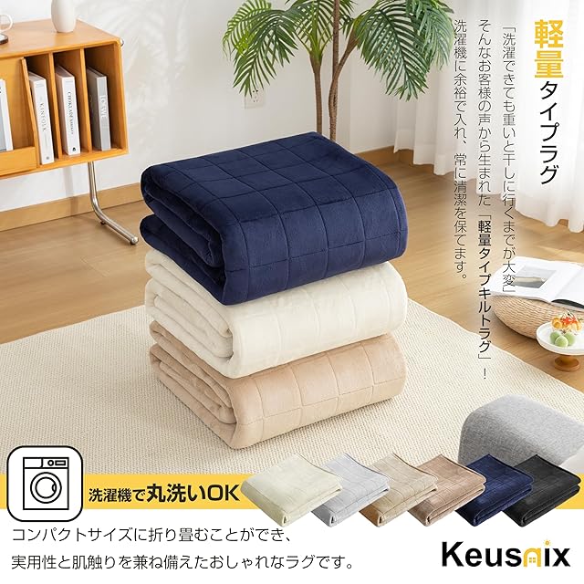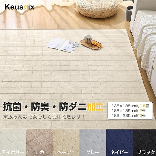 商品名:Keusnix ラグ カーペット キルトラグ 滑り止め付き 洗える ラグマット 135×185cm 約1.5畳 絨毯 オールシーズン 抗菌防臭 ふわふわ肌触り フランネルラグ 床暖房 ホットカーペット対応 無地 アイボリー
