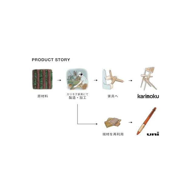 【特徴】ジェットストリーム4&1のグリップに、カリモク家具の未利用材を使用したモデル。