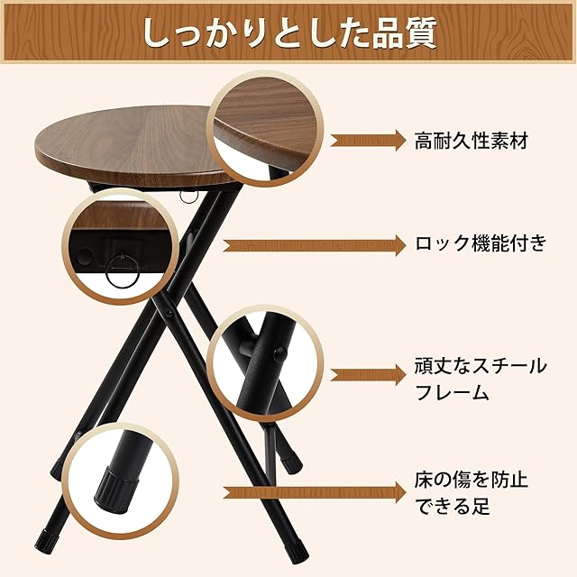 商品名:VECELO 折りたたみチェア パイプ椅子 折り畳み 軽量 スリム 持ち運び 完成品 組立不要 高さ46.5cm 耐荷重100kg 木目