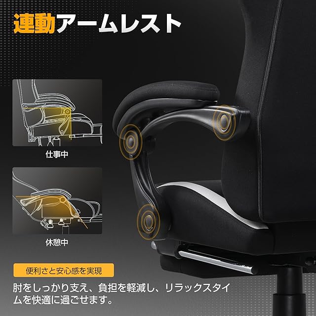 商品名:GTRACING ゲーミングチェア ファブリック デスクチェア 人間工学設計 腰痛対策 ポケットコイル 90°~150°リクライニング [一体式オットマン付き] 連動式アームレスト 蒸れない 高背もたれ ヘッドレスト&ランバーサポート 通気性メッシュ 高耐久性 GT905-Black