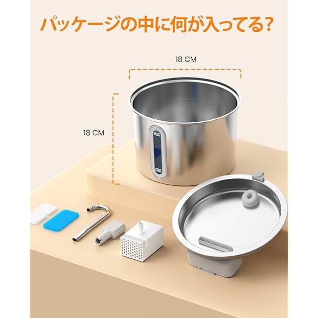 Oneisall の猫用自動給水器には、以下のような特徴とメリットがあります。 まず、素材と耐久性に関しては、SUS304 ステンレス素材を採用しており、非常に耐久性があり、衛生的で熱に強く、赤ちゃんの給餌素材や手術用品素材にもよく使われているため、大切なペットをケアするのに最適な素材です。 次に、設計と機能面です。出水口のデザインは、水中に酸素を豊富に含ませるだけでなく、猫の興味を引きつけて飲水量を大幅に増やすことができ、常に新鮮なお水を提供できます。また、30dB 以下の低圧超静音ポンプを搭載しており、夜間でも騒音を感じにくく、ペットと飼い主の双方が快適に眠ることができます。容量と洗浄の利便性については、2L の大容量タンクを備えており、長期間のお留守番時でもペットの水回りを心配する必要がありません。本体の各部は簡単に分解・組立てが可能で、隙間まで徹底的に洗浄できるうえ、食洗機の高温洗浄(最高 70℃対応)にも対応しています。フィルターの交換に関しては、「活性炭フィルター(2~4 週間)/ スポンジフィルター(1~2 カ月)」と明瞭に案内しており、メンテナンスの負担を軽くしています。蛇口式のデザインは、流れる水に猫の興味をそそり、自然な飲水行動を促すとともに、水中に酸素を豊富に含ませ、新鮮な水の魅力を引き出します。取り外し可能な蛇口部分は「落ち葉モード」「ウォーターフォールモード」の 2 種類の噴水パターンを切り替えることができ、ペットの好みに合わせて調整できます。 さらに、ろ過システムについては、三重ろ過機能を備えています。青スポンジフィルターがペットの毛髪やごみを物理的に捕集し、活性炭フィルターが重金属イオンや余剰塩素を吸着して水質を軟化し、抗菌スポンジが異味や微生物の繁殖を抑制することで、常に清らかな循環水を提供しています。 最後に、セット内容とアフターサービスに関しては、本体には交換フィルター 3 セット、透明な水位確認窓で残量が一目瞭然です。製品に不具合がある場合、購入後 30 日間は無理由返品・交換対応が可能で、24 時間日本語対応のカスタマーサポートチームが迅速に対応しています。 なお、ステンレス鋼の犬のボウルをきれいにする方法としては、ボウルの表面をスクラバーで引っかかないでください。スポンジまたは柔らかい布と食器用洗剤を使用して、食べ物の汚れを取り除きます。その後、ボウルを酢と温水の溶液、または漂白剤と冷水の溶液に浸して消毒します。最後に、きれいな水ですすぎ、乾かします。
