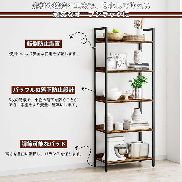 kukeimaruオープンラック 5段本棚 オフィス収納棚 幅60㎝×奥行30㎝×高さ153.5㎝ リビング、寝室、オフィスに適用するラック レトロ