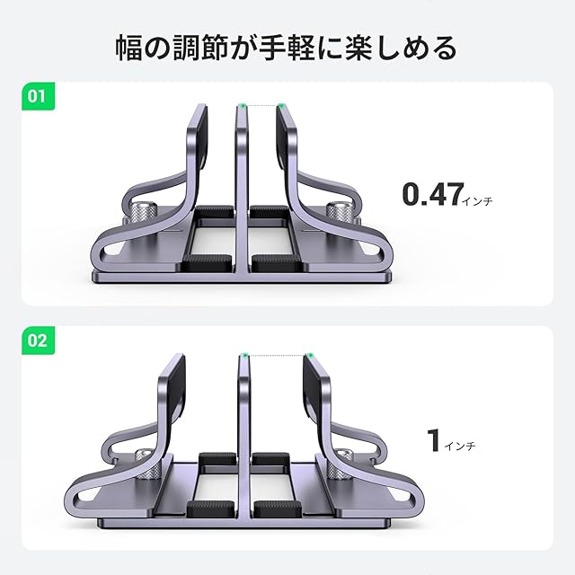 【ダブルスロット&幅調整可能】厚さ0.5インチから最大1インチのノートパソコンにフィットし、2台まで収納出来ます。 ネジをひねることで簡単にスロットを調整でき、工具が不要です。