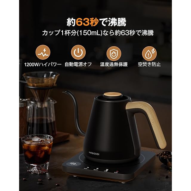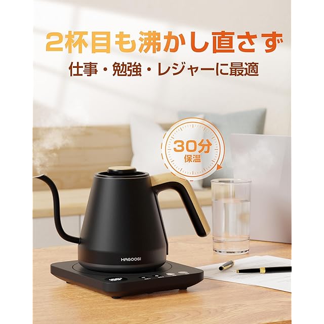 商品名:ハゴオギ (HAGOOGI) 電気ケトル 0.8L/1.0L 1200W コーヒー ケトル 温度設定 (1℃単位) 保温機能 空焚き防止 自動電源OFF 細口 ドリップ 電気ポット おしゃれ