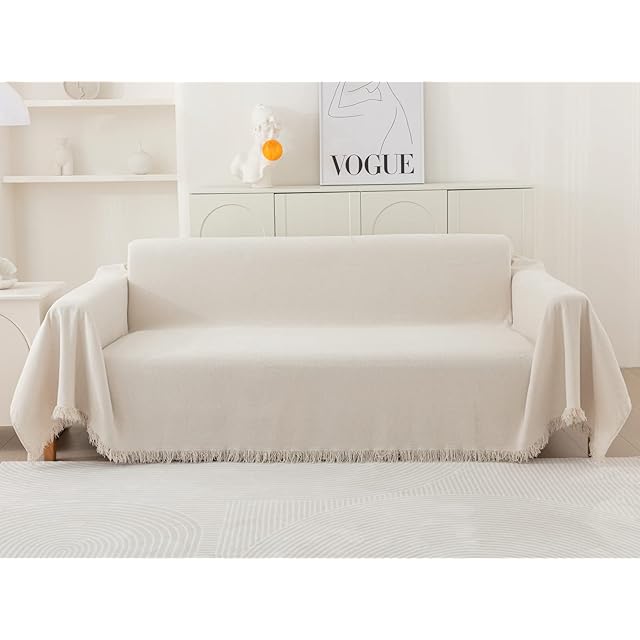 HomeFirst 北欧風 マルチカバー 長方形 180*300cm 大判 ソファーカバー 2 3 人掛け シェニール ブランケットフリンジ付き ベッドカバー カウチ ベッドカバー 毛布 無地 テーブルクロス 柔らかく軽く 吸湿 通気 速乾 洗える 四季通用 ベージュ
