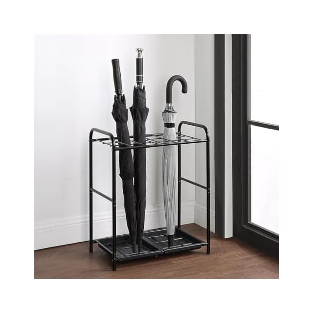 製造元:サニーポイント 傘立て スリム 水受け外し可能 スチール製 おしゃれ 業務用 傘入れ 大容量 安定 ブラック