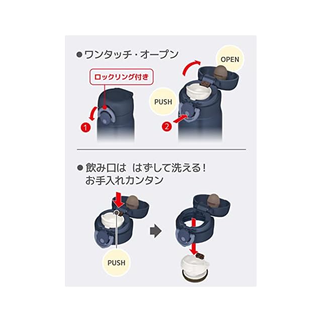 内びん:ステンレス鋼 / 胴部:ステンレス鋼(アクリル樹脂塗装) / フタカバー:ABS樹脂 / フタ・せん本体・飲み口:ポリプロピレン / フタパッキン・せんパッキン:シリコーンゴム
