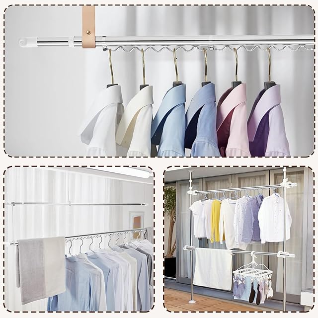 *幅広く利用可能:物干し竿としてタオル、マフラー、帽子、ふとんなどの洗濯物干し用に大活躍するだけでなく、ご都合に合わせてクローゼット中のスタンドに置けばハンガーを掛けて、衣類の収納と整理にもピッタリです。