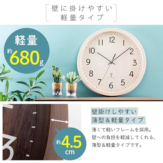 アイリスプラザ 掛け時計 電波時計 ナチュラル 直径30cm 文字盤あり 電波受信していつでも正確な時間を刻む 軽量680g 薄型厚み4.5cm 秒針は一秒一秒「チクタク」と進むステップムーブメントタイプ 一人暮らし シンプルデザイン 秒針 メーカー1年付き PWCRR-30-M