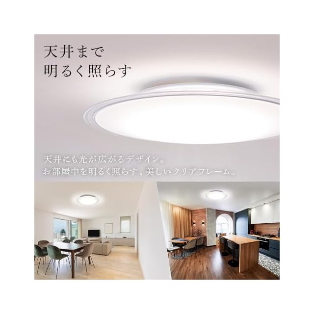自分で取り付けラクラク!12畳用クリアフレームのLEDシーリングライトです。部屋全体の雰囲気を引き締める、洗練されたデザイン。光広がる、美しいクリアフレーム。