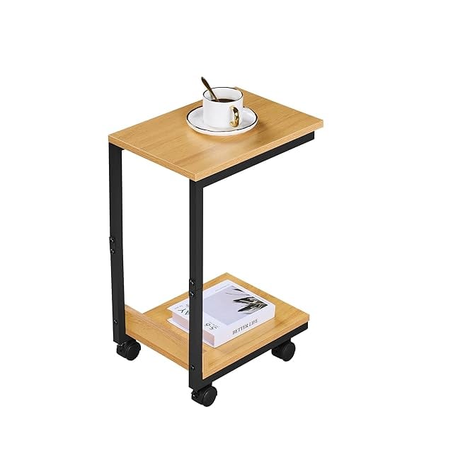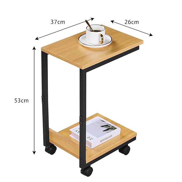 VECELO サイドテーブル キャスター付き 幅約37×奥行約26×高さ約53cm コの字型 2段収納 ミニテーブル ベッドサイドテーブル ソファ横 ベッド横 C形茶卓 北欧風 おしゃれ 木目調 コンパクト 省スペース ナイトテーブル かんたん組立 スリム