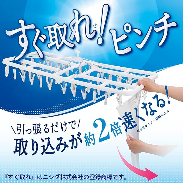 洗濯物を引っ張るだけで取込める「すぐ取れ角ハンガー」50ピンチ