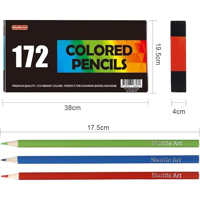 Shuttle Art 色鉛筆 172色 油性色鉛筆 カラーペンセット 大人の塗り絵 メタリック色 イラスト デザイン デッサン 落書き 紙函 子供用 初心者 入園・入学お祝い プレゼント