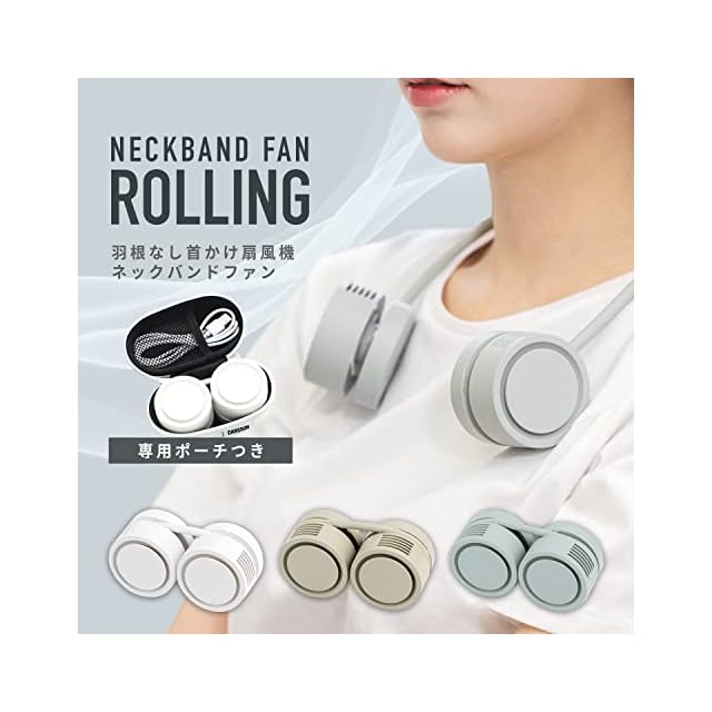【付属品】・ネックバンドファン Rolling本体・専用ケース・ケース用カラビナ・充電用USB-C to Aケーブル・取扱説明書および書