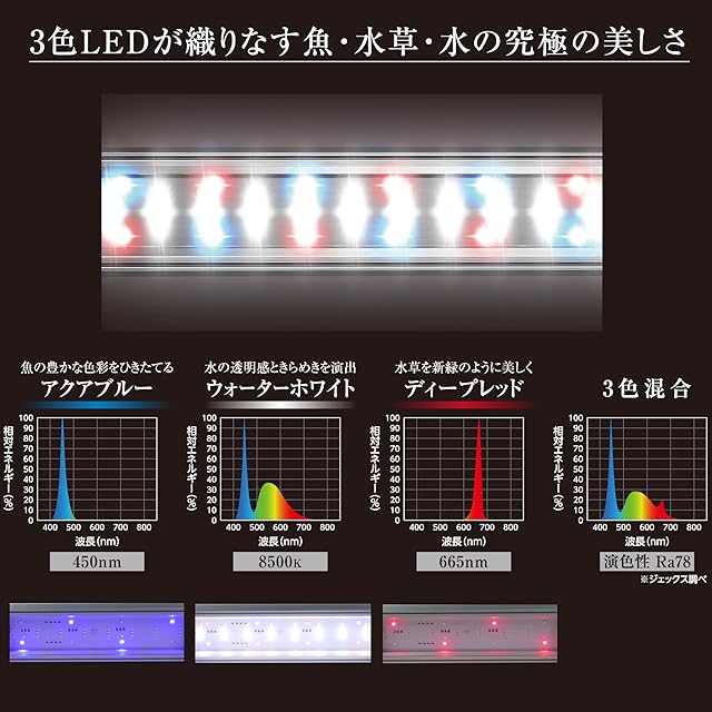 魚と水草を色濃く、くっきり見せる3色LED