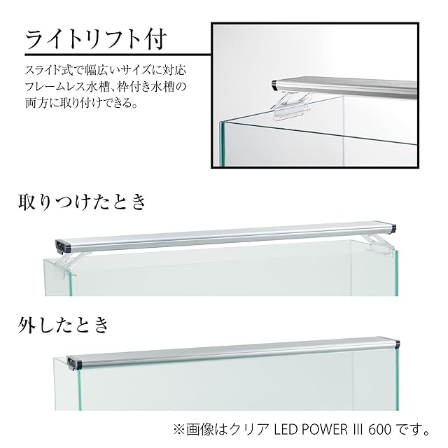 商品名:GEX クリアLED POWER III 300 明るさ500lm 色温度10,000K LED3色切り替え ライトリフト付 アクアリウム 多肉植物幅30cm水槽用