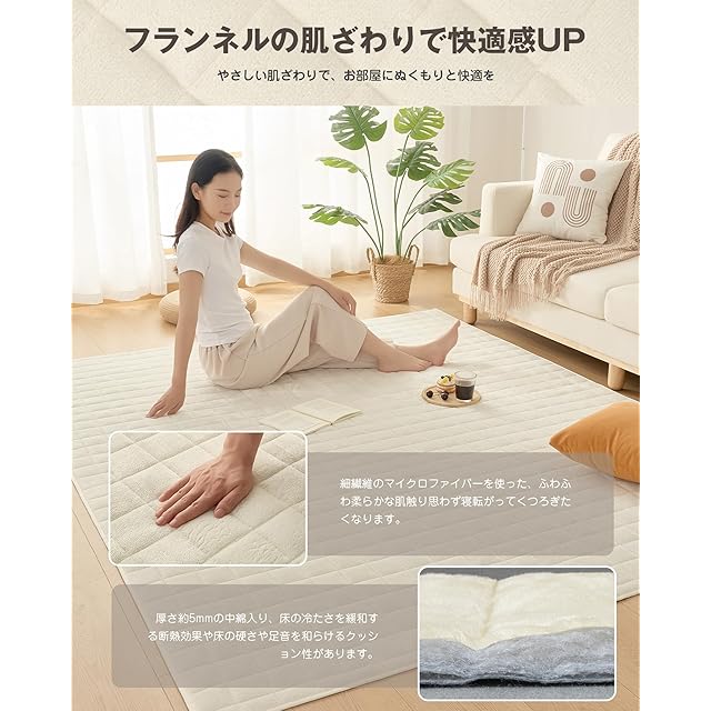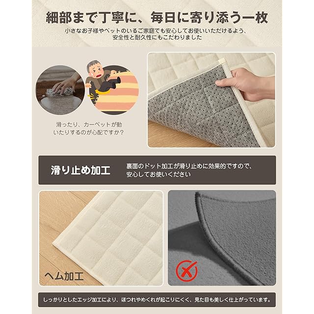商品名:VK Living カーペット キルトラグ ラグマット 絨毯 ラグ 130×190cm(約1.5畳) 洗える 滑り止め付 防ダニ 抗菌 防臭 1年中使えるタイプ 床暖房 ホットカーペット対応 フランネルラグ アイボリー