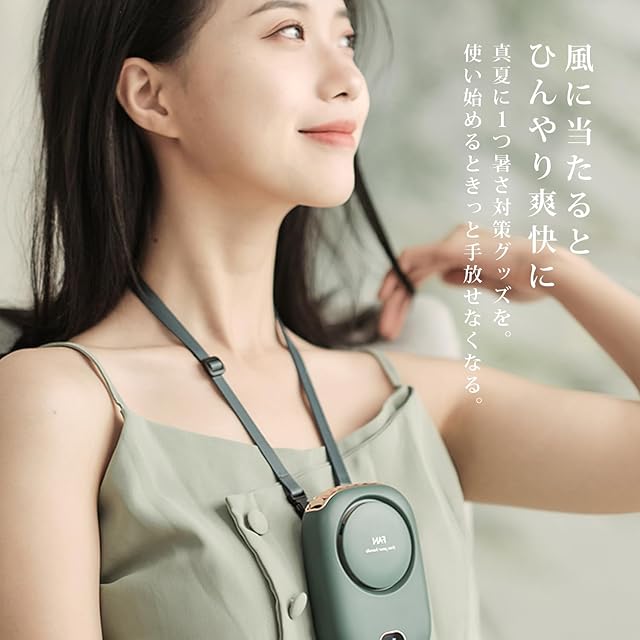 首掛け、腰掛け扇風機のタイプなので、両手が解放されて、使用しながら手元の仕事も続くことができます。真夏のフェスやアウトドア、スポーツ観戦、散歩、山登り、遠足、花火大会、料理などの日常生活であらゆる場面で活躍するアイテムです。
